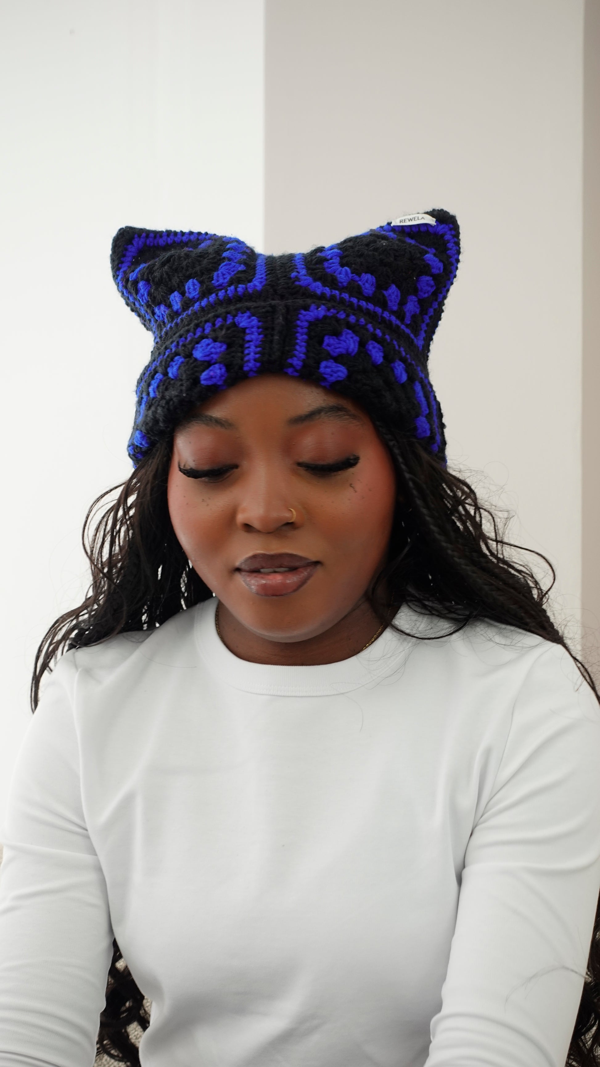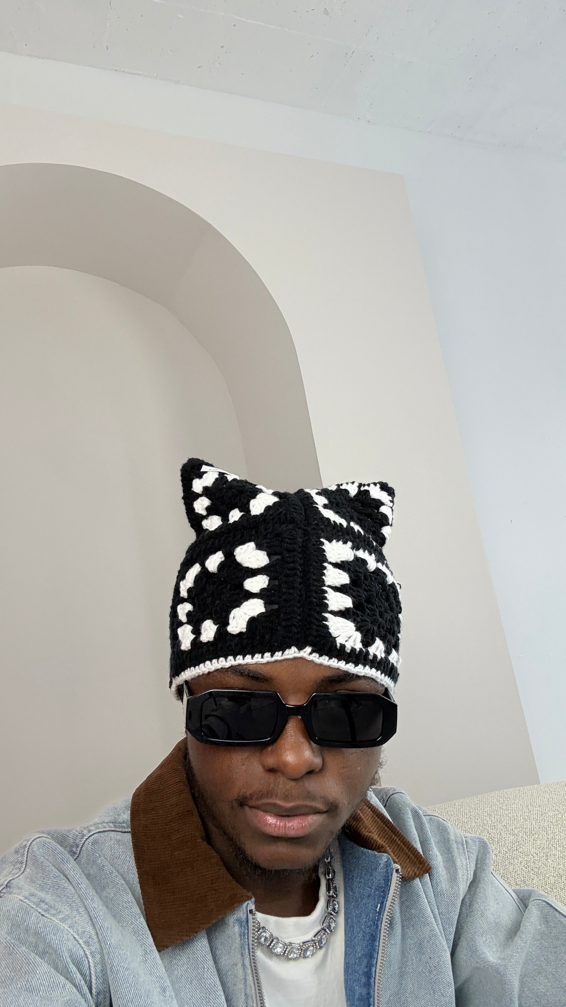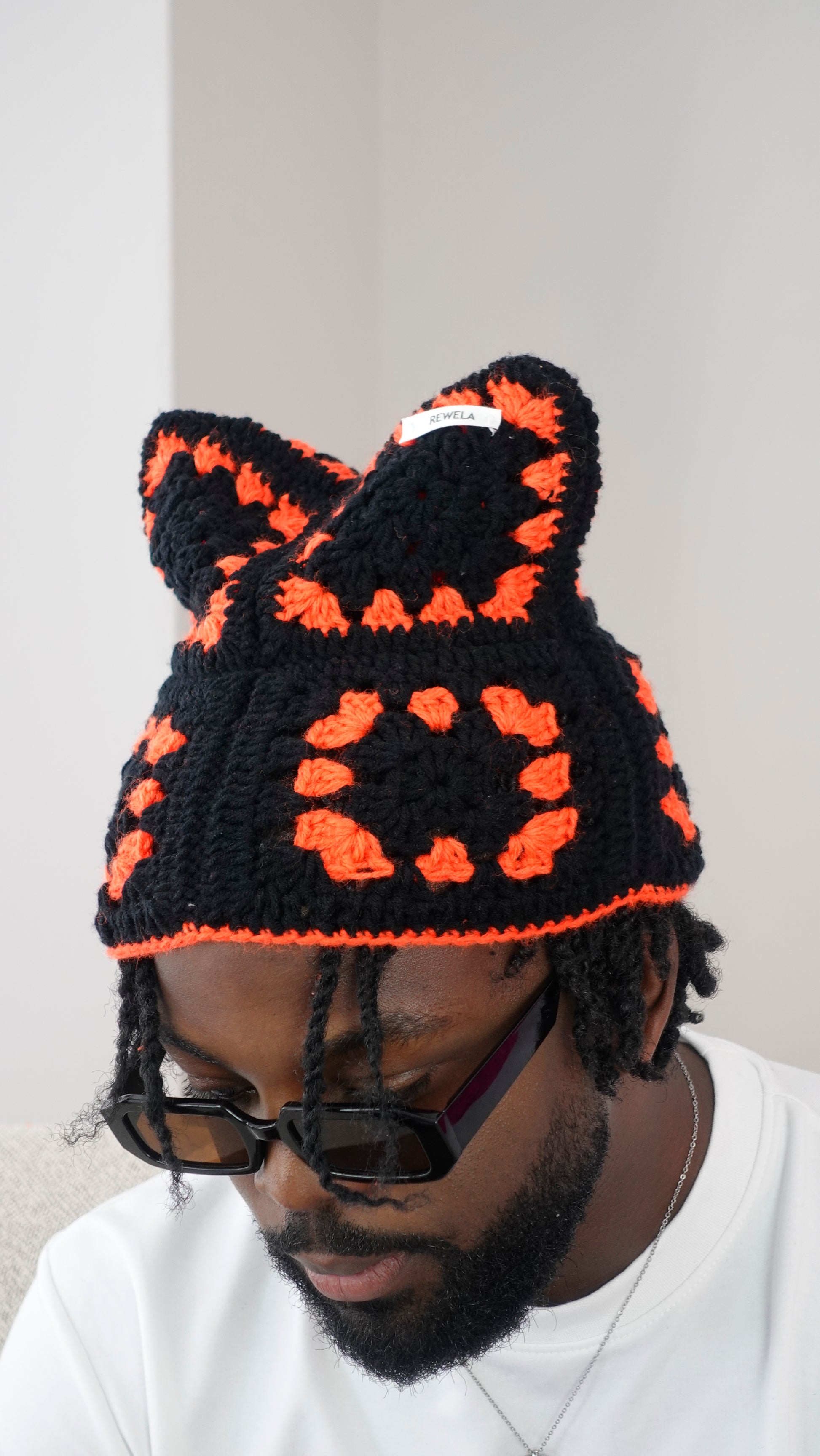 Conçu à partir de carrés colorés à base de laine en coton, il est aussi mignon et chaud que des oreilles de chats.
