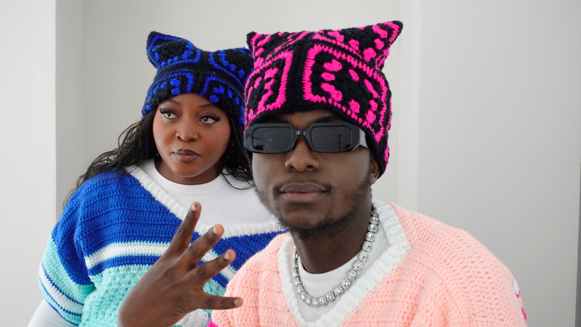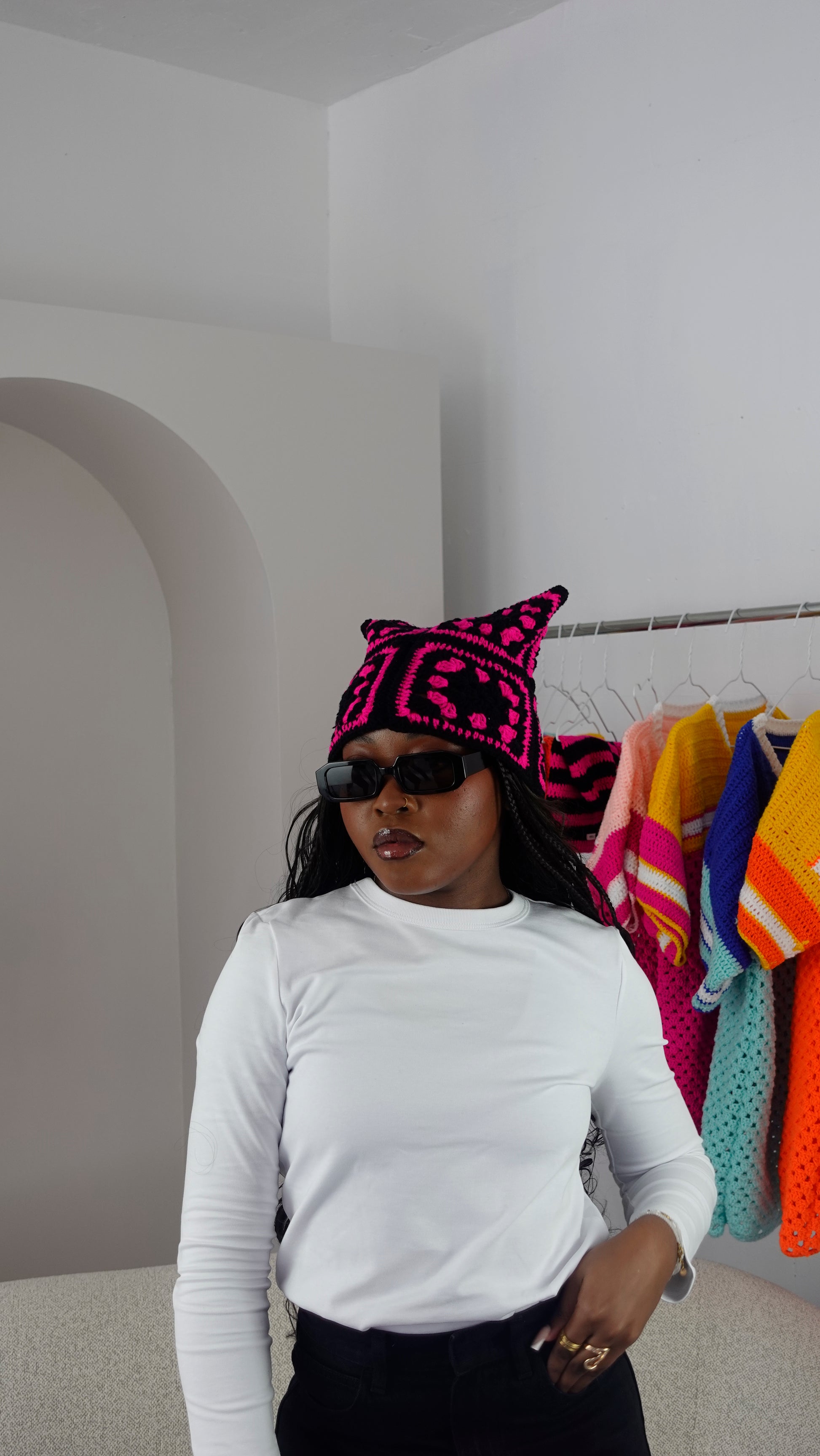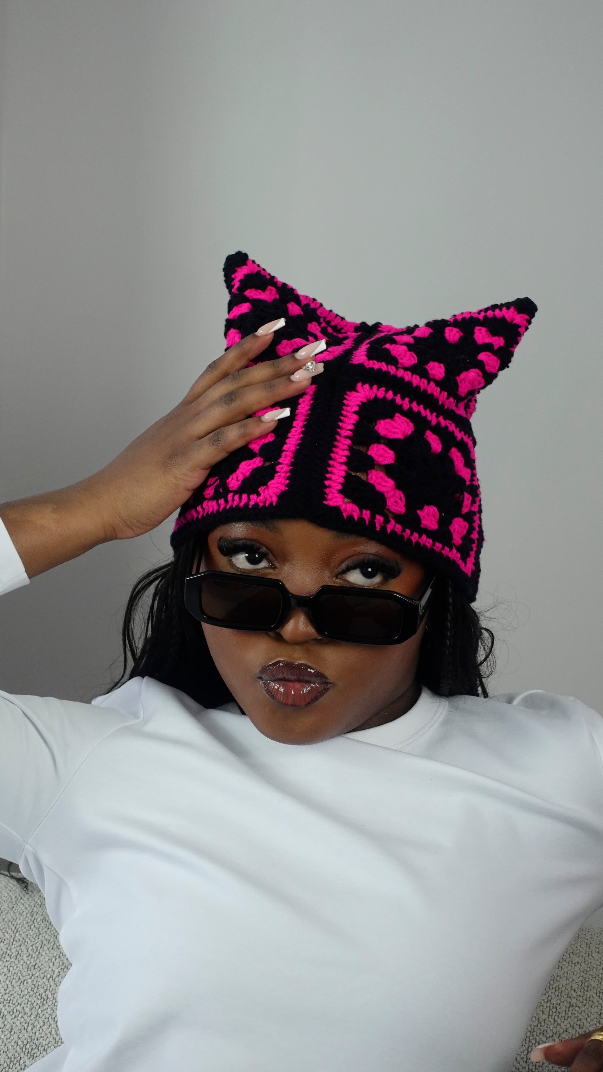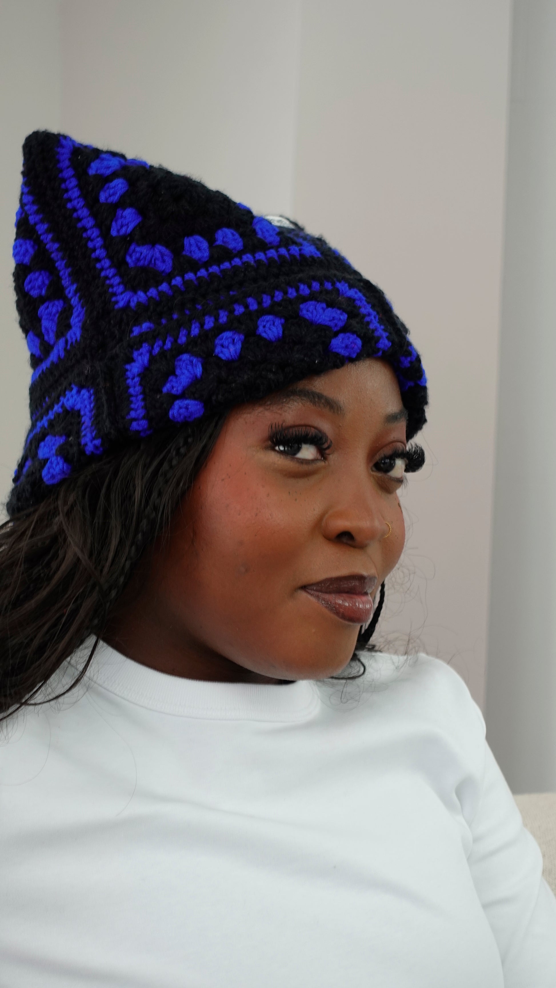 Conçu à partir de carrés colorés à base de laine en coton, il est aussi mignon et chaud que des oreilles de chats.